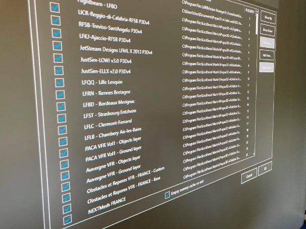 Pat737 Posté(e) le 19 juin Signaler Posté(e) le 19 juin Bonjour à tous, Après un changement de pc et donc une ré-installation de l'ensemble de mes scènes Frvfr, je rencontre 2 soucis pourriez vous m'aider à les résoudre. Le premier est une bande blanche qui apparait sur le lac à l'approche de LFLB (voir photo 3206) Le second est la perte de l'ILS à l'approche de LFTH (Toulon- Hyère) celui-fonctionnait sur l’ancien pc. Je vous joins aussi la liste de ma bibliothèques (photo 3208) pour savoir si j'ai tout compris dans l'empilage des scènes. Ce changement de Pc dans le cockpit nous a permis de passer en 1920 et j'apprécie particulièrement le truelandscap qui donne des paysages superbes. Merci pour aide. Cordialement. L'équipe 737 project. Citer