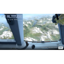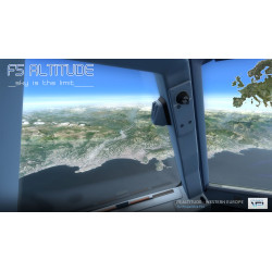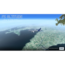 The FS Altitude Western Europe scenery covers the entirety of Western Europe, spanning over 5 million km², with low-resolution, photorealistic textures optimized for airliner flight at cruising altitude.